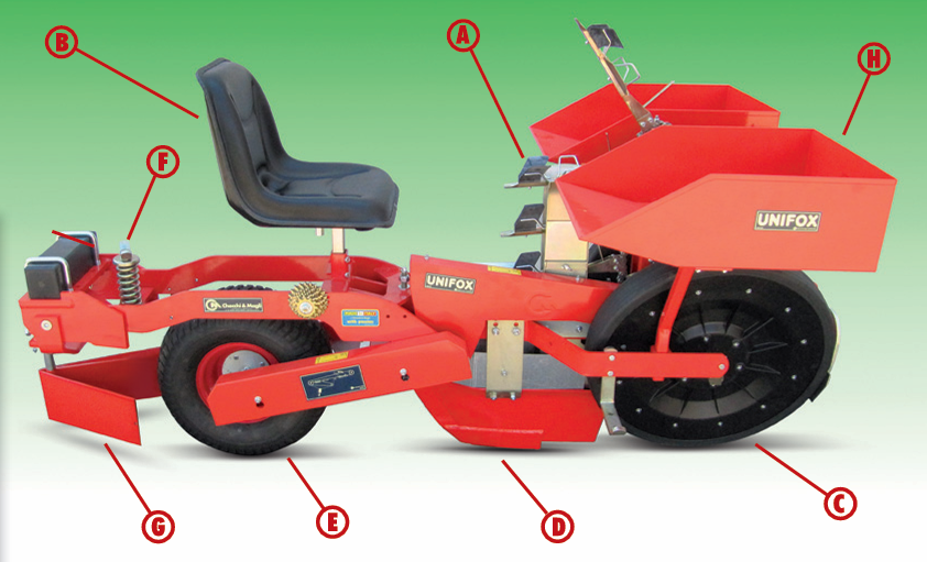 🚜 Precision and consistency in every planting Each transplanting unit features an independent drive wheel, ensuring constant traction while leaving the compaction wheels free to create a perfect ridge. The result is a planting spacing that is always precise, uniform and adjustable, even under demanding working conditions.