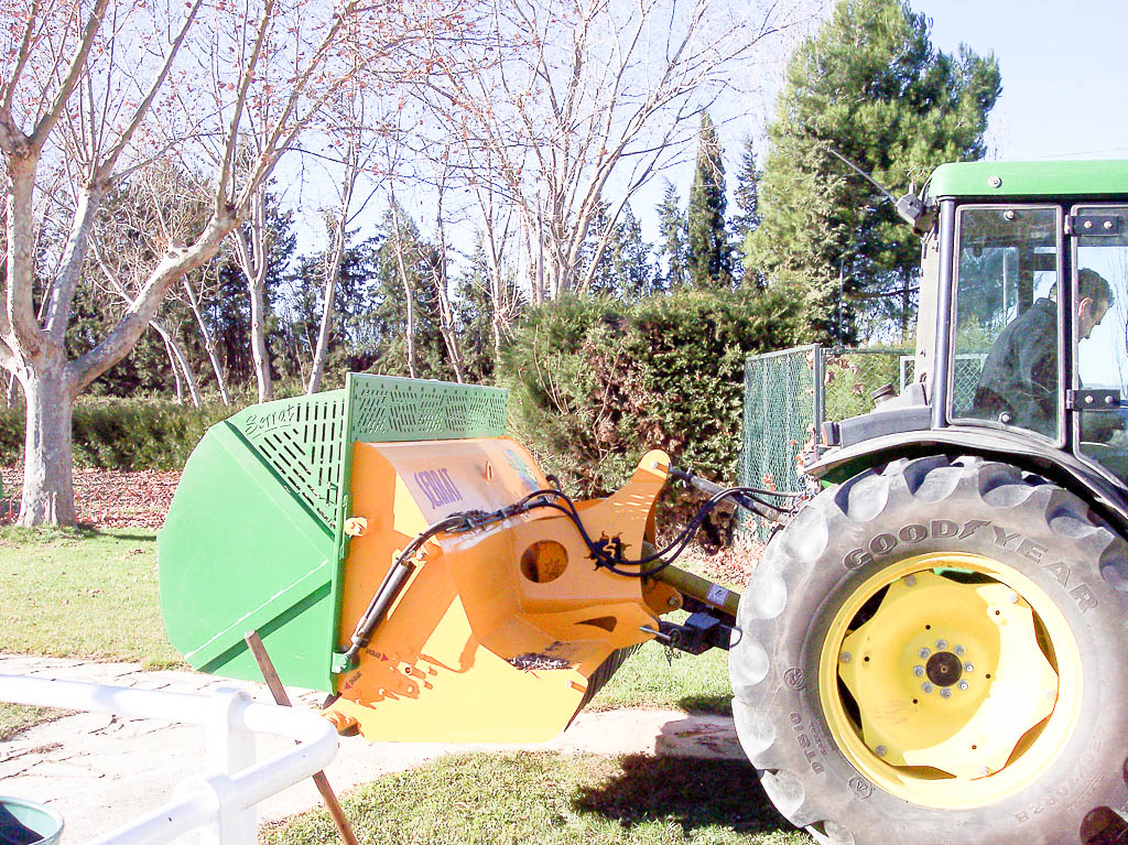 Equipped with rotor of pendulum hammers and box with hydraulic discharge to the ground.
