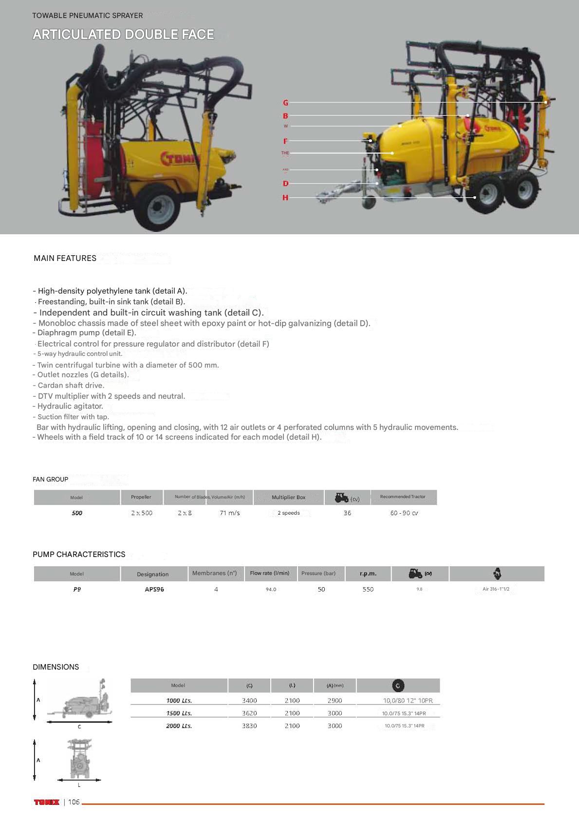 - Monobloc chassis in hot-dip galvanized sheet steel. hydraulic opening / closing, nozzle orientation