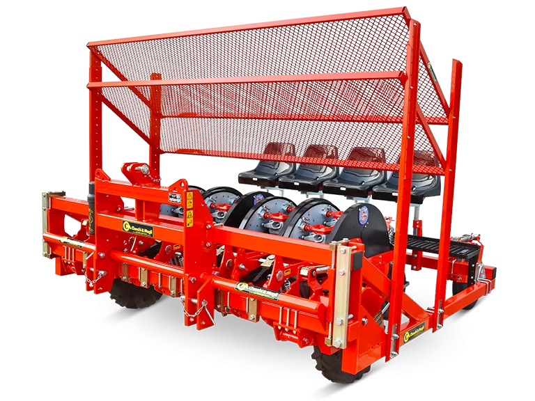 • Assento do operador virado para a traseira do trator, proporcionando ergonomia e controlo total durante o transplante.